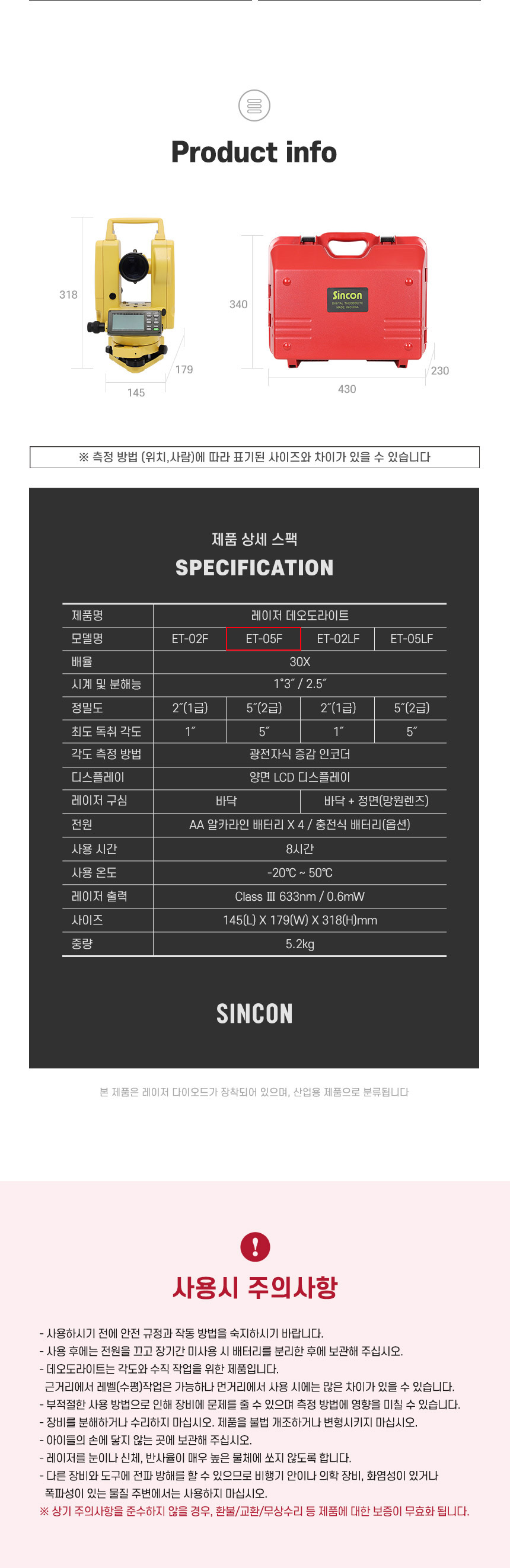 SINCON 디지털 데오도라이트 ET-05F/트렌싯