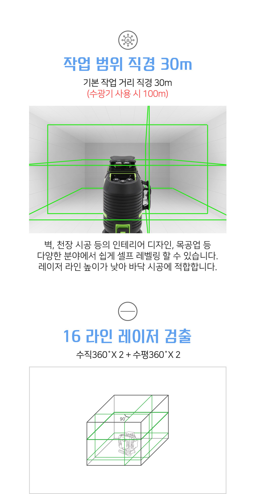 제품의 사양, 기능, 사용법 등을 자세히 보여주는 이미지들입니다