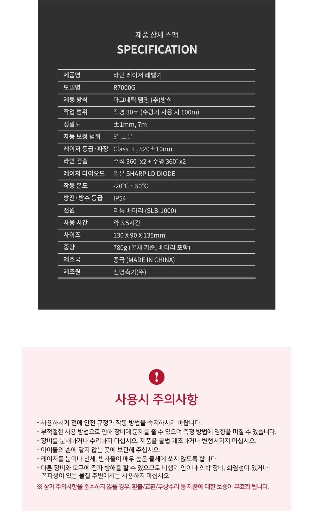 제품의 사양, 기능, 사용법 등을 자세히 보여주는 이미지들입니다