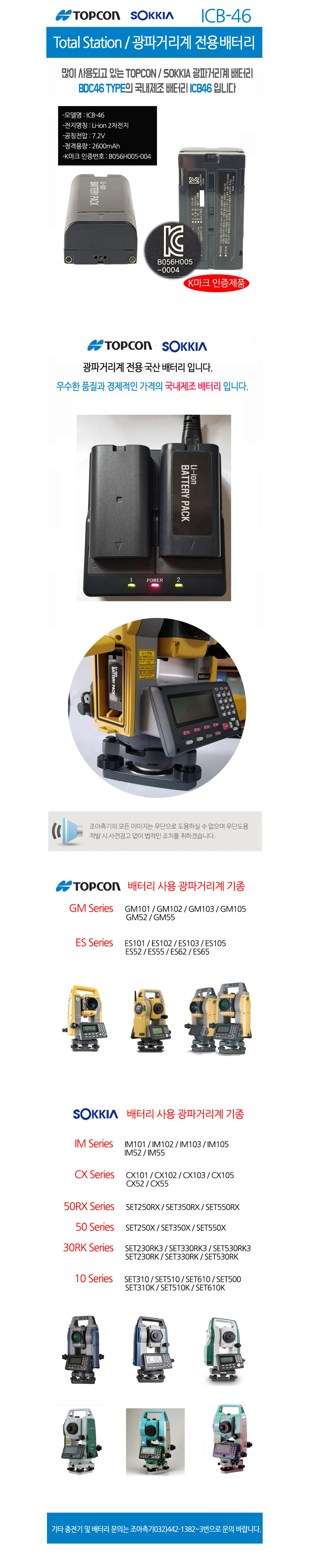 SOKKIA/TOPCON 국산 광파기 배터리 ICB-46(BDC46)